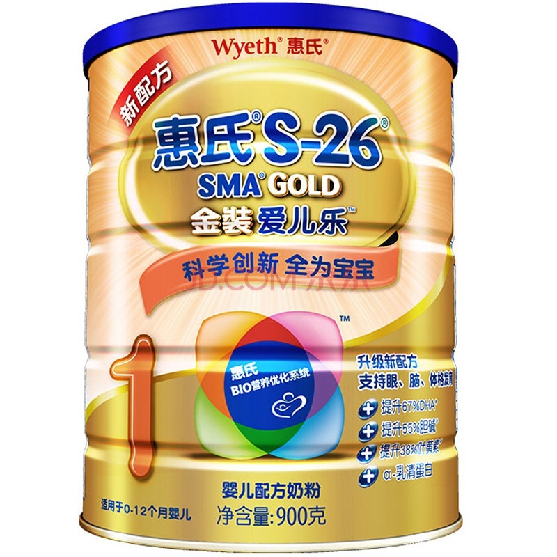 • 商品名称:惠氏(Wyeth)S-26金装爱儿乐婴儿配方奶粉 1段 900克