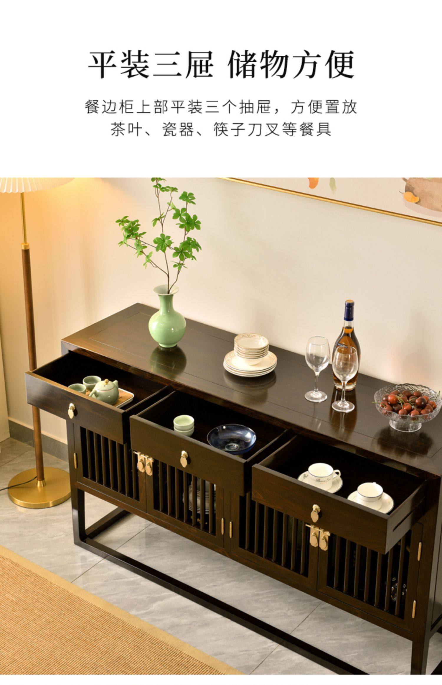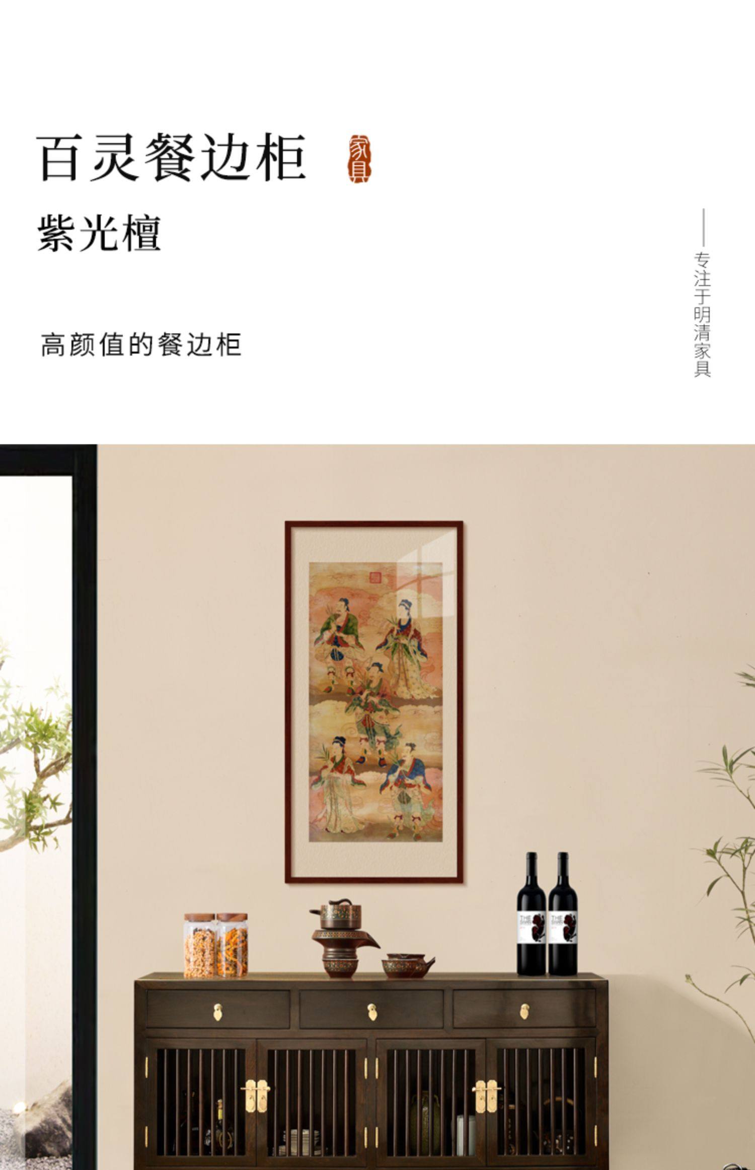 • 商品名称:紫光檀餐边柜红木明式家具置物柜碗柜中式茶水柜储物柜
